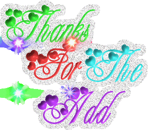 Thanks for the Add Scraps, Thanks for the Add Glitter Graphics, Thanks for the Add Orkut Scraps, Thanks for the Add Photos, Thanks for the Add Picture Scraps, Thanks for the Add Comments for Orkut, Myspace, Facebook, Hi5, Tagged, Friendster and blogs/websites.